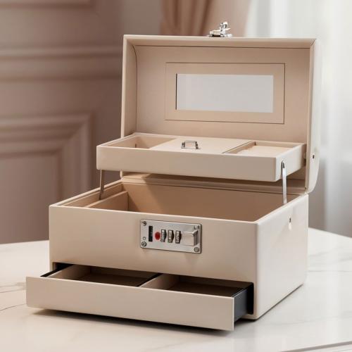 امنحي لمجموعتك من الإكسسوارات لمسة من الرقي مع علبة المجوهرات الراقية المصممة بخامة بيج فاخرة وملمس أنيق، مزودة بمرآة داخلية، قفل آمن، وعدّة Compartiments لتخزين كل أنواع المجوهرات بسهولة وتنظيم.