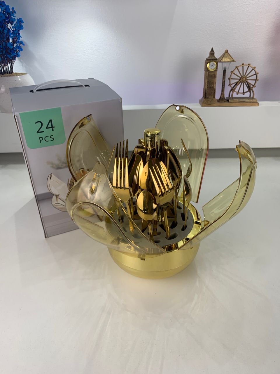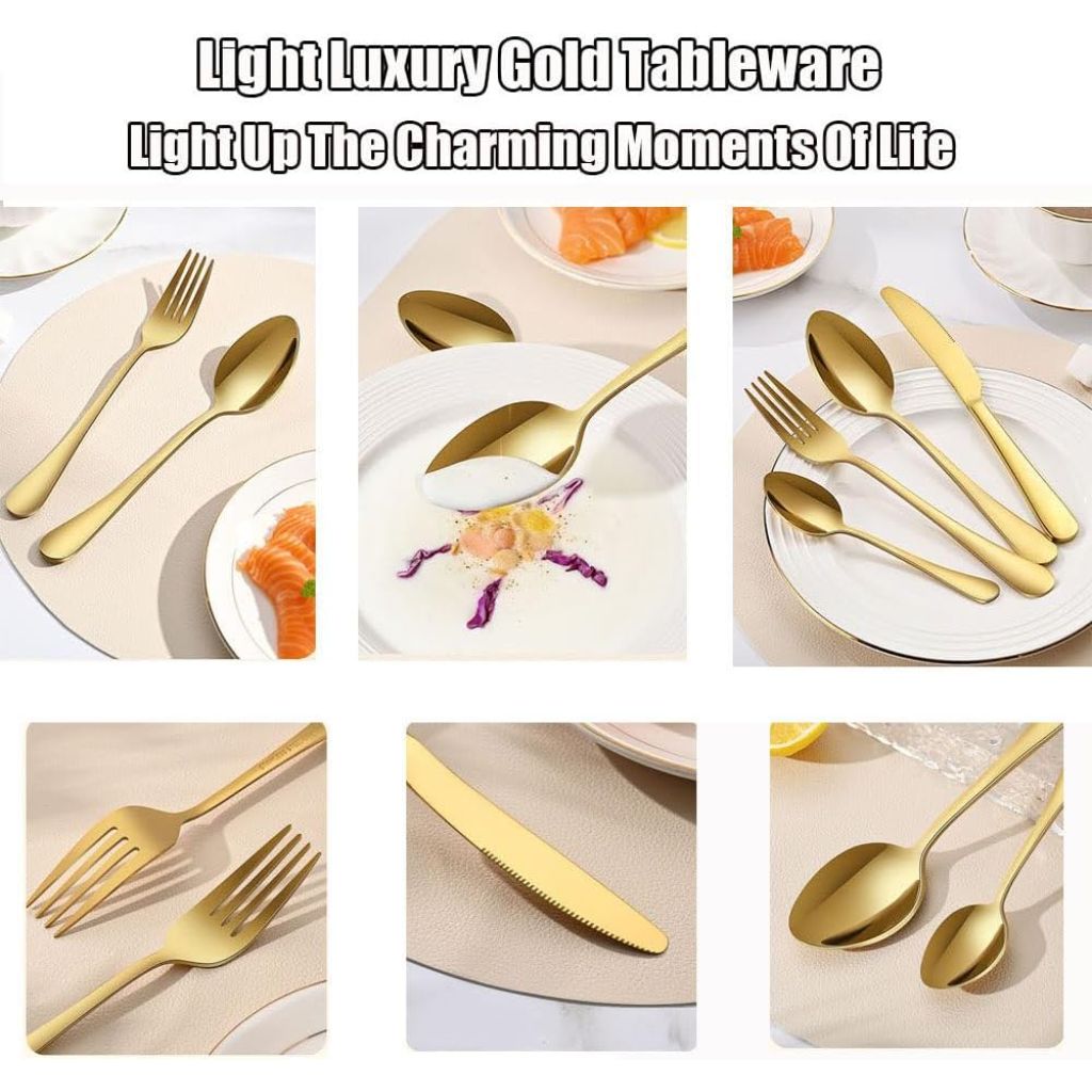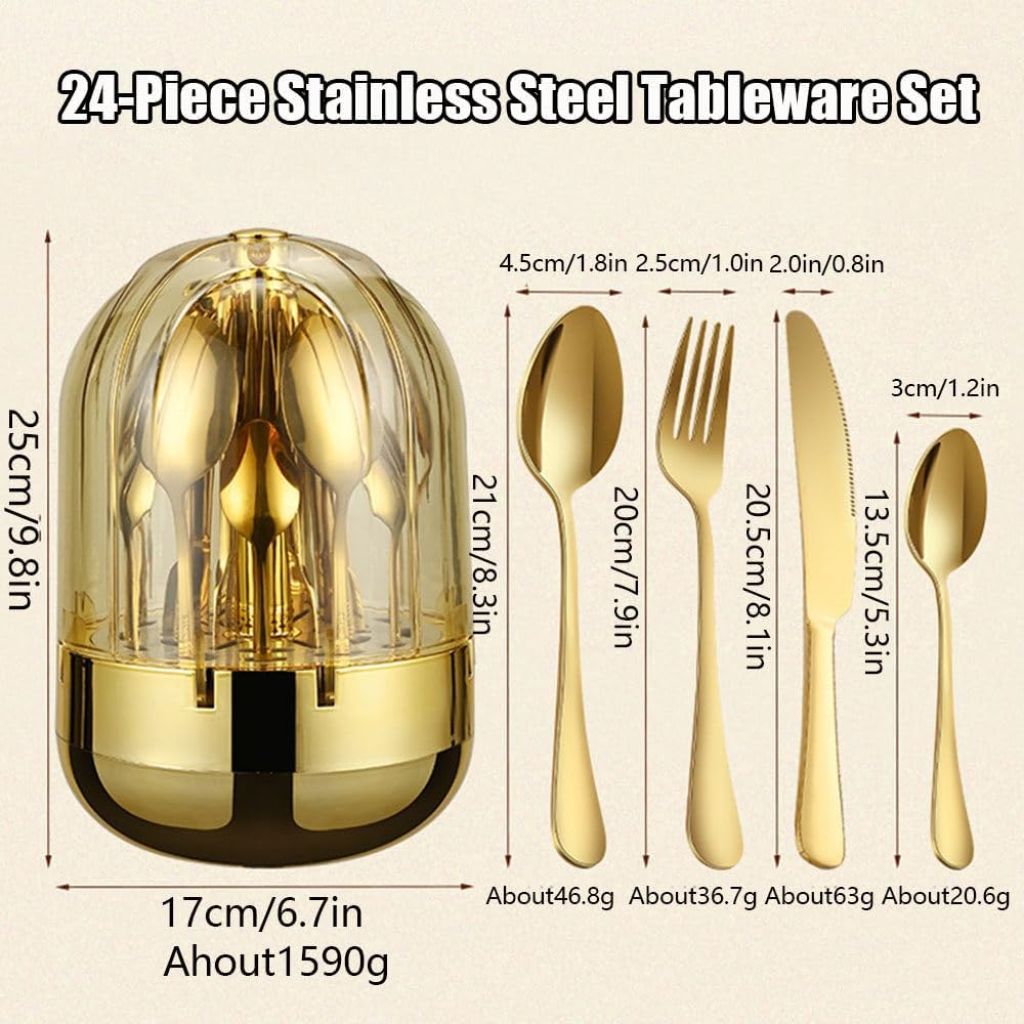 Ensemble de Couverts en Acier Inoxydable Doré 24 Pièces – طقم أدوات مائدة من الفولاذ المقاوم للصدأ
