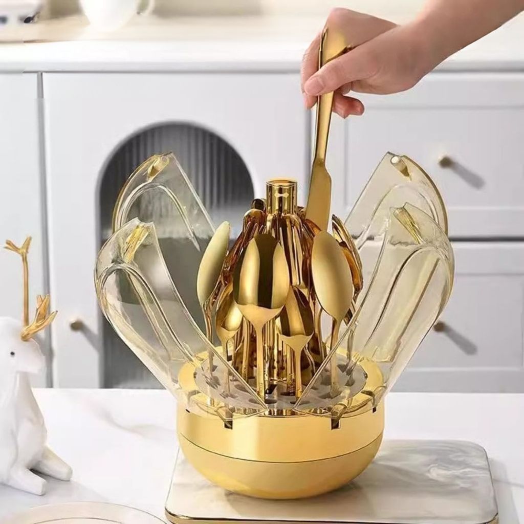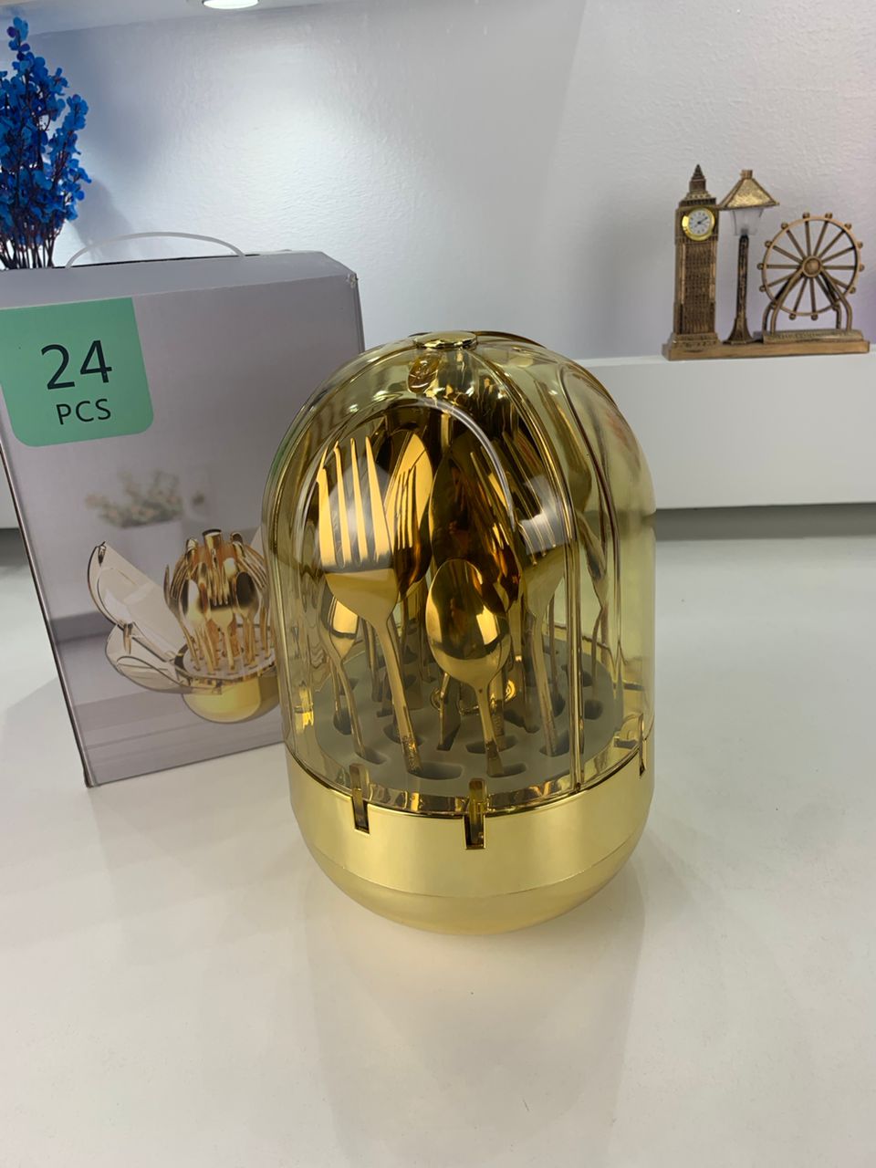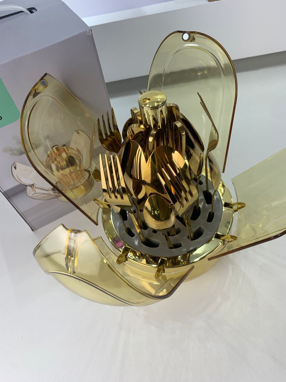 Ensemble de Couverts en Acier Inoxydable Doré 24 Pièces – طقم أدوات مائدة من الفولاذ المقاوم للصدأ