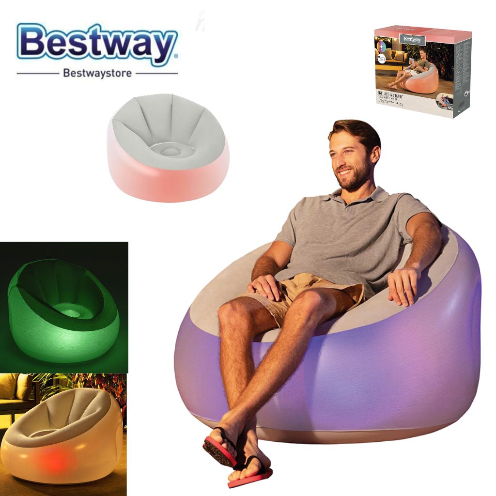 Le fauteuil gonflable 75086 de Bestway crée une belle ambiance et est parfait pour les fêtes ou toute fonction nocturne comme les soirées entre amis.
