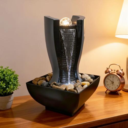 تم تصميم هذه النافورة لتمنحك راحة بصرية وسمعية دون الحاجة إلى صيانة معقدة. بفضل الإضاءة الخلفية LED، يبرز تدفّق الماء وحركة الأحجار بشكل أنيق، مع إمكانية ترتيب الحصى حسب ذوقك. مثالية للاسترخاء، تهدئة الأعصاب، أو خلق أجواء مريحة للعمل والتركيز. حجمها العملي يسمح بوضعها حتى في المساحات الصغيرة، مع لمسة فخامة لأي ديكور داخلي 🌿💡