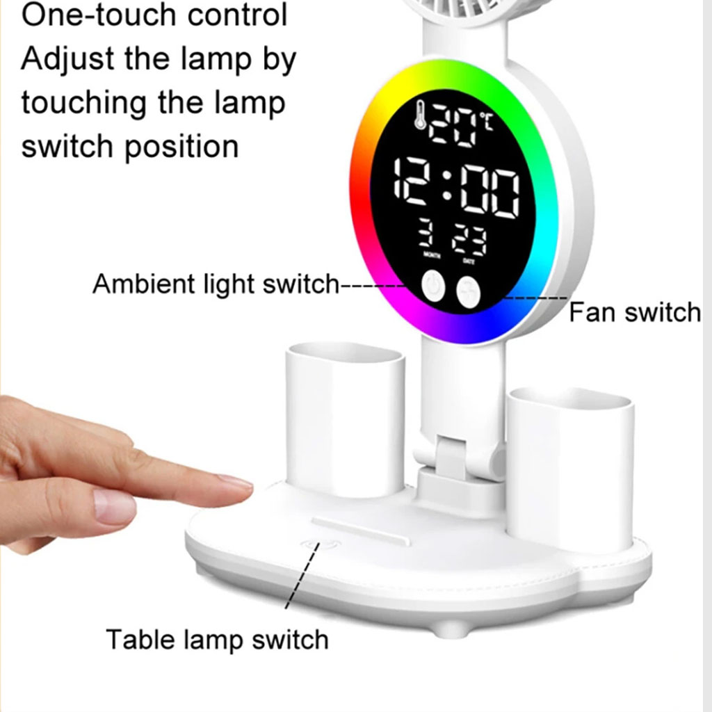 أضف لمسة من الحداثة والأناقة إلى مكتبك مع مصباح المكتب الذكي LED المزود بإضاءة محيطة ناعمة وشاشة رقمية مدمجة. مثالي للطلاب، المهنيين أو عشاق القراءة الذين يبحثون عن إضاءة مريحة وعملية في نفس الوقت.