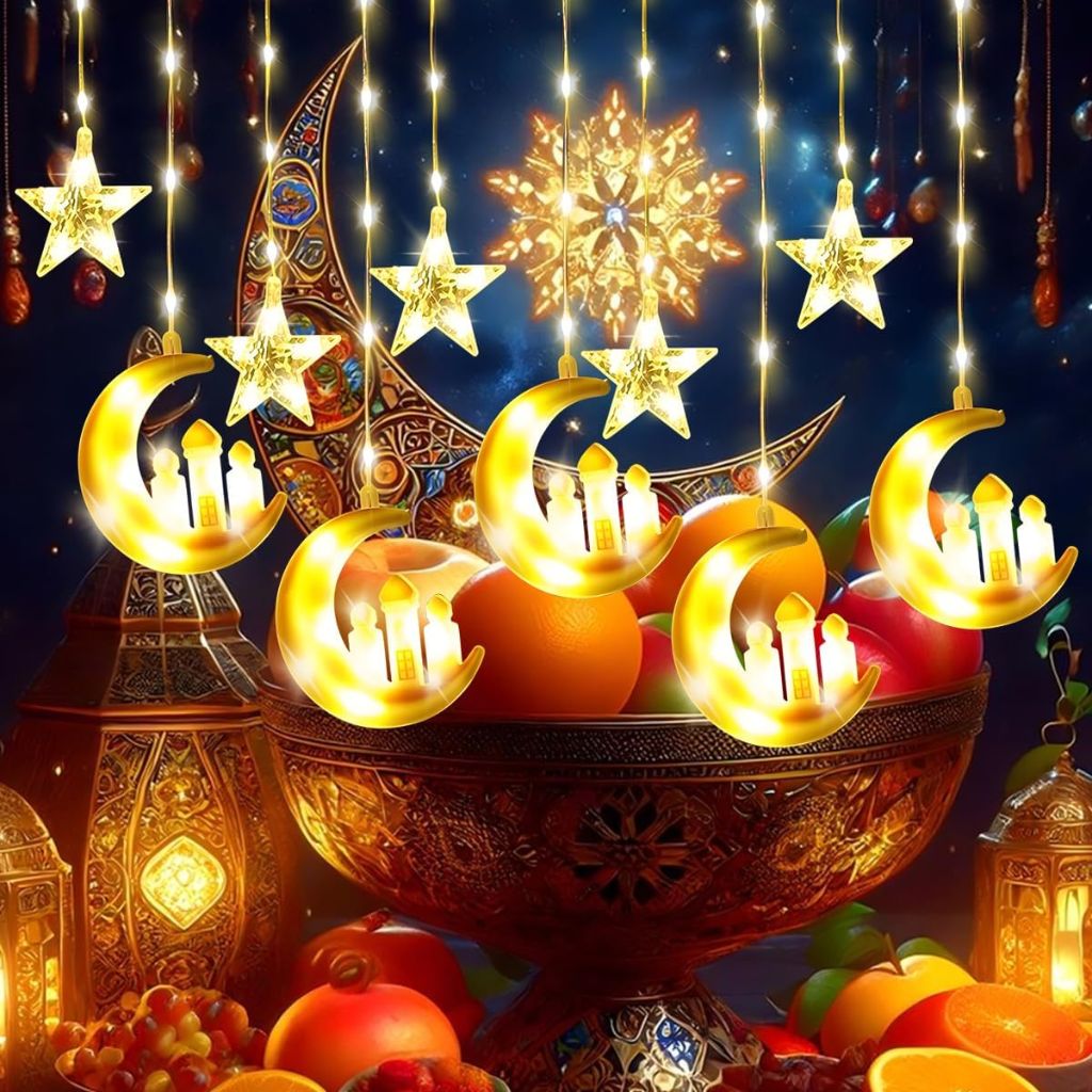 Apportez une ambiance chaleureuse et spirituelle à votre intérieur avec cette lampe décorative Ramadan & Eid. Conçue pour illuminer vos soirées de fête, elle dispose d’un design élégant représentant la lune, les étoiles et un château, parfait pour les célébrations islamiques. Avec une longueur de 3 mètres, elle est idéale pour décorer les salons, balcons, mosquées ou espaces de prière.