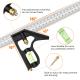 Outils de Menuiserie Carrée en Acier Inoxydable de 12'/300 mm, Règle de 45/90 Degrés avec Niveau à Bulle.