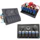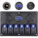> 6 Interrupteurs avec indication LED bleue, vous pouvez les utiliser pour allumer et éteindre l’éclairage, la radio, etc. indépendamment les uns des autres, par exemple, afin que la batterie ne soit pas surchargée inutilement, les interrupteurs sont équipés d’une protection contre les surtensions au moyen d’un fusible de 15 A