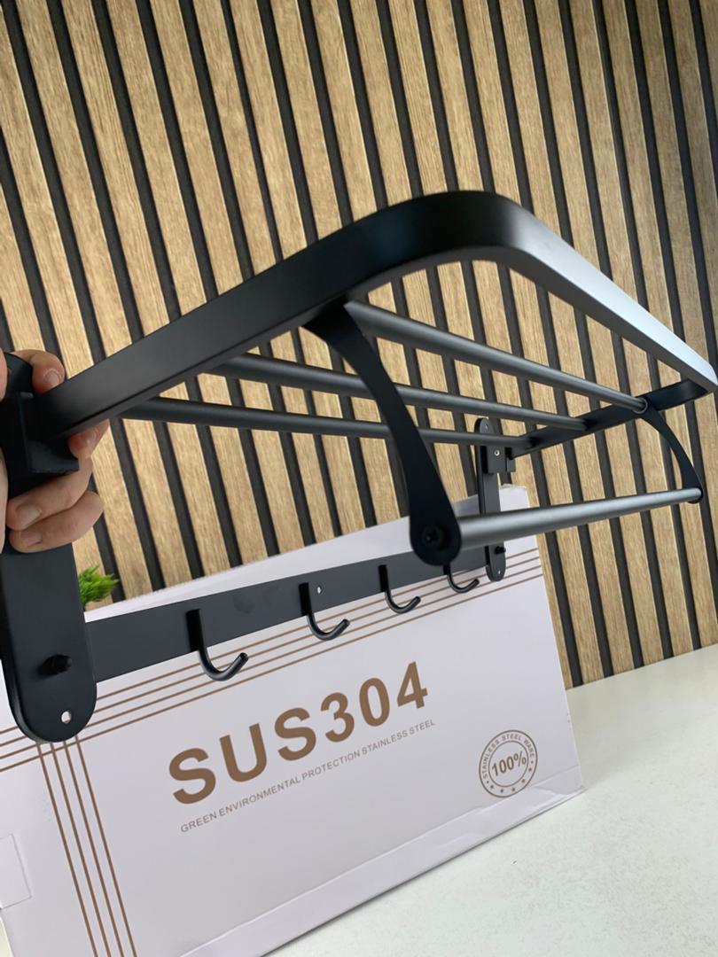 الرف العلوي : مثالي لوضع المناشف الكبيرة، أو الروب، أو الملابس المطويّة.الخطّافات السفلية (4 خطّافات) : مخصصة لتعليق المناشف الصغيرة أو الإكسسوارات اليومية.🎨 لمسة جمالية أنيقة :