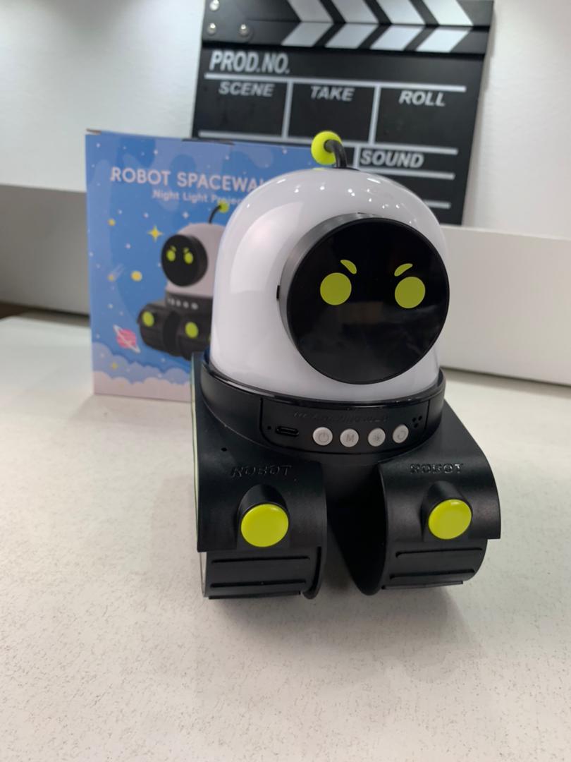 ⭐ المميزات :🎬 12 فيلم + 72 وضع إضاءة: يضوي السقف بنجوم، كواكب، المحيط… يخلي الطفل يعيش عالم خيالي وينعس بسهولة.🔊 سبيكر بلوتوث مدمج: ديري موسيقى هادئة ولا أصوات طبيعية (white noise) باش الطفل ينعس مرتاح.🔋 قابل للشحن USB: بطارية 1200mAh، محمول ولاسلكي – يقدر الطفل يديه وين ما يحب.💡 سطوع 200 لومن + حماية العيون: صور واضحة ومضيئة، آمنة لصحة عينين الطفل.🎁 هدية مثالية: لأعياد الميلاد، المناسبات ولا كديكور لغرفة الأطفال.🤖 تصميم روبو متحرك: يبان كي روبو صغير بعجلات يتحرك قدام/لور، يسار/يمين… يجمع بين لعبة وبروجكتور موسيقي!📏 المواصفات :الحجم: 17 × 14 × 19 سمالوزن: 610غ