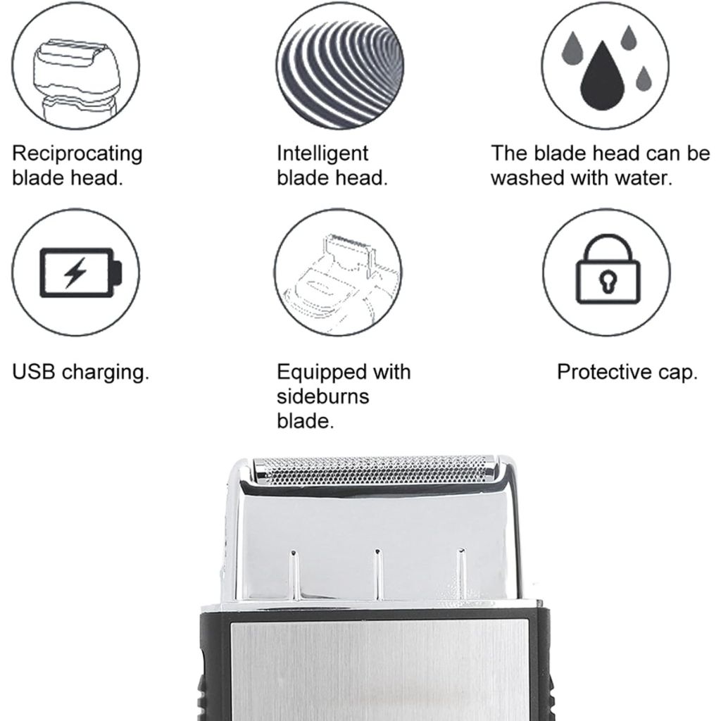 Design Compact et Léger – تصميم مدمج وخفيف الوزن : Ce rasoir ultra-fin est idéal pour les hommes en déplacement, offrant une portabilité optimale pour une utilisation à domicile, en voyage ou en camping.Recharge USB Pratique – شحن USB عملي : Équipé d'un port USB, il permet une recharge facile et rapide, éliminant le besoin de câbles supplémentaires et assurant une utilisation sans fil pratique.Performance de Coupe Efficace – أداء حلاقة فعال : Conçu pour offrir une expérience de rasage douce et précise, adapté à différents types de peau et de poils.Accessoires Inclus – الملحقات المرفقة : Livré avec une brosse de nettoyage pour un entretien facile, garantissant une hygiène optimale après chaque utilisation.Polyvalence d'Utilisation – تعددية الاستخدام : Parfait pour une utilisation quotidienne ou lors de déplacements, ce rasoir assure une apparence soignée en toutes circonstances.