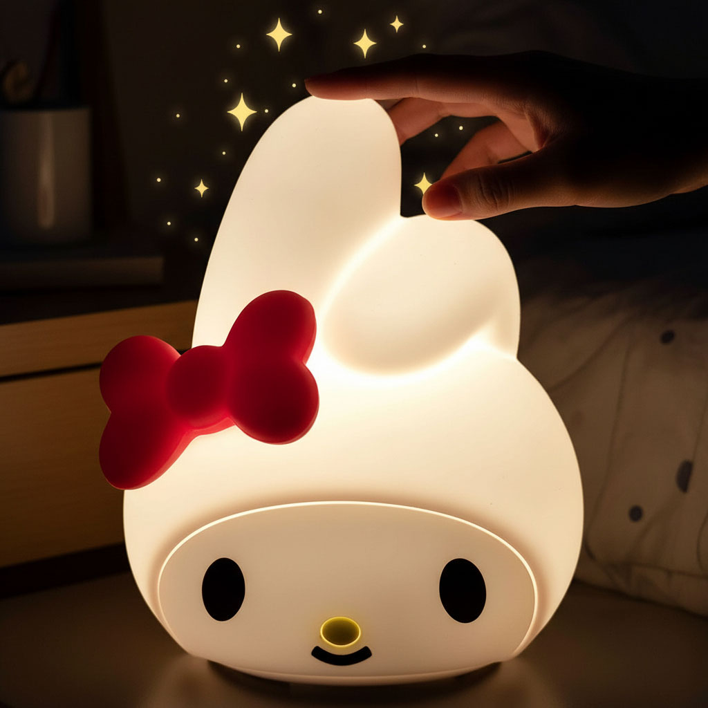 مصباح نوم لطيف على شكل شخصية My Melody بتصميم كاوائي جذاب يبعث الراحة والطمأنينة. مزود بضوء LED دافئ يمنح أجواء هادئة ومناسبة لنوم عميق و آمن للأطفال.